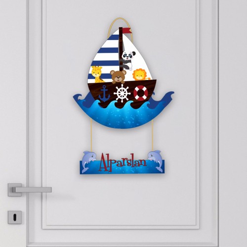 • İsme Özel Gemide Hayvanlar Çocuk Odası Kapı Süsü