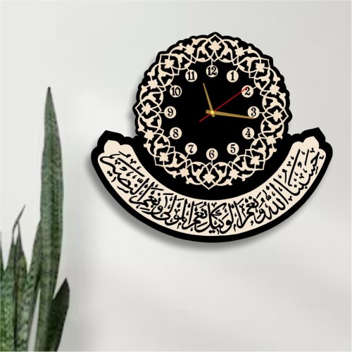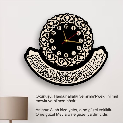 Hasbinallah Duası Yazılı Dekoratif Duvar Saati, İslami Duvar Dekoru