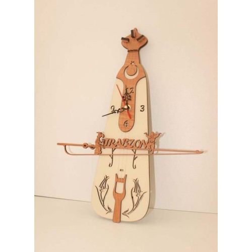 El yapımı ahşap kemençe saat. CNC kesim ile 3mm MDF den üretilmiştir. Sarkaçlı saat ses çıkarmaz.